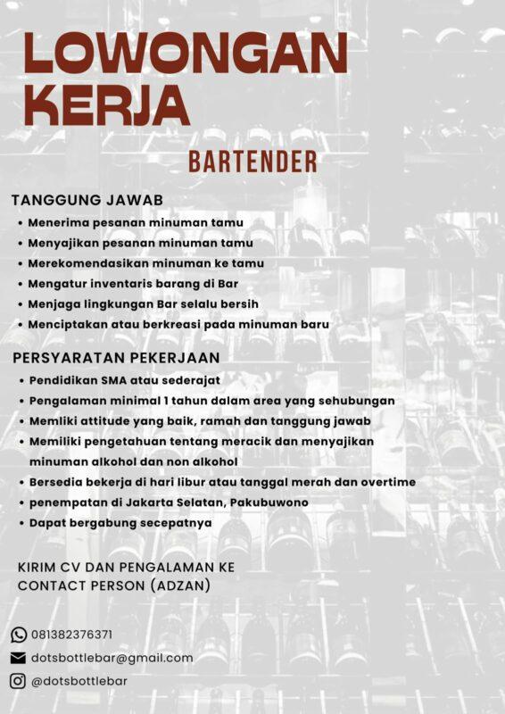 Lowongan Kerja Bartender Waiter Waitress Di Dots Bottlebar Jakartakerja